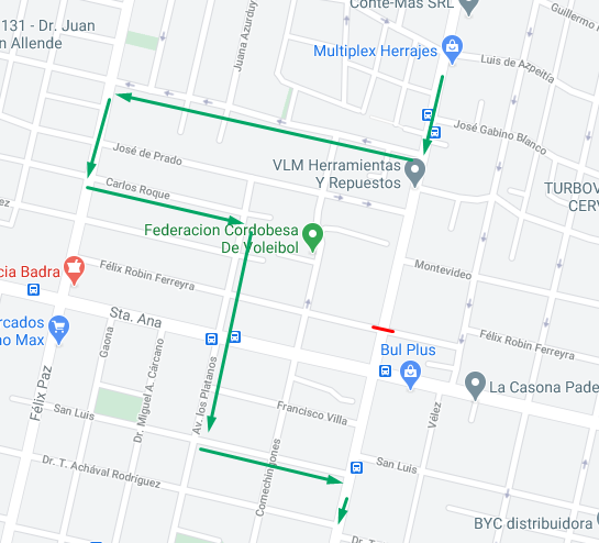 - Los cortes de tránsito se establecen en la esquina de Maestro Vidal con Félix Robin Ferreyra y en Padre Luis Galeano, entre Ciudad de Tampa y Obispo Lazcano.